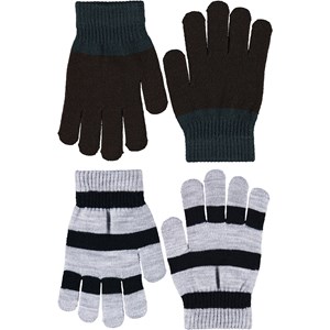 2-pak strikhandsker, i grå, sorte og grå nuancer. Handskerne har en ribkant om håndleddet der gør dem behagelige at have på og ikke glider af hånden.