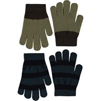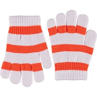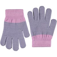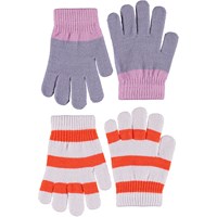 2-pak strikhandsker. Det ene i lilla nuancer og det andet i grå og røde striber. Handskerne har en ribkant om håndleddet der gør dem behagelige at have på og ikke glider af hånden.