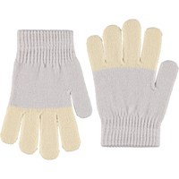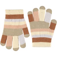 2-pack of knit gloves. One pair in off-white and purple, and the other in stripes with shades of brown, gray, pink, and beige. The gloves feature a ribbed cuff at the wrist, making them comfortable to wear and ensuring they stay in place.