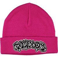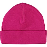 Finstrikket, pink hue i 100% merinould med broderet applikation på den ombukkede kant.