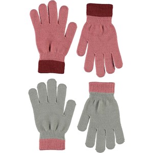To par strik handsker i lyserød og grå.