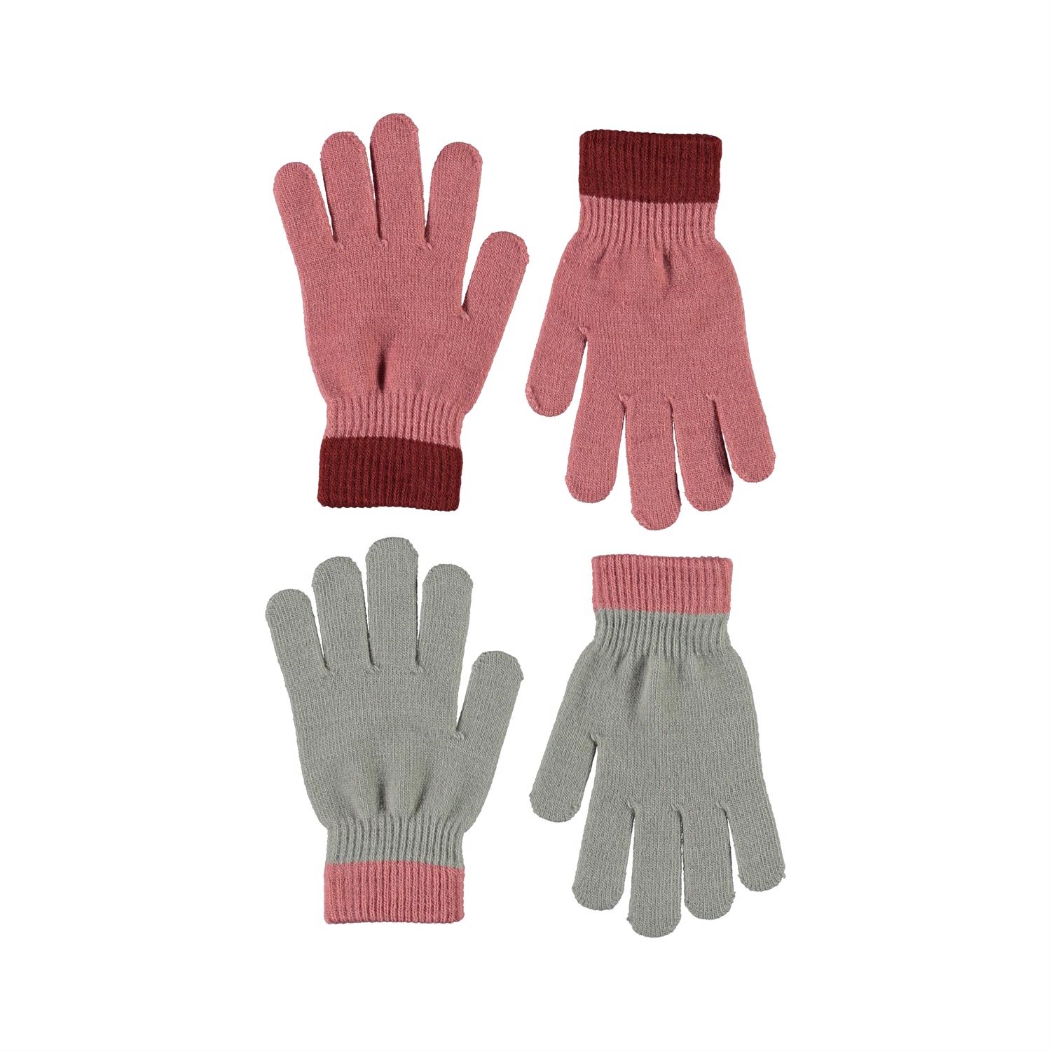 To par strik handsker i lyserød og grå.
