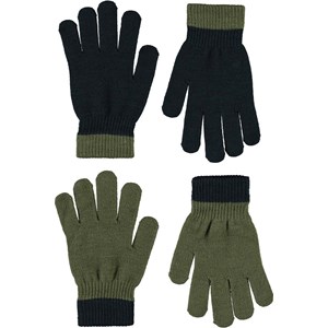 To par strik handsker i to forskellige nuancer af grøn.