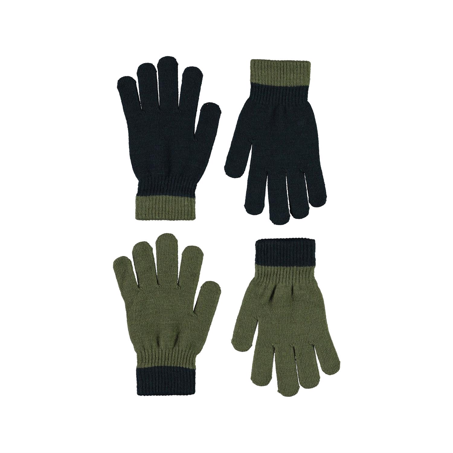 To par strik handsker i to forskellige nuancer af grøn.
