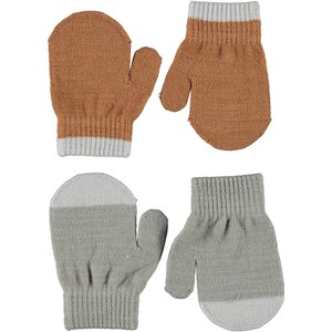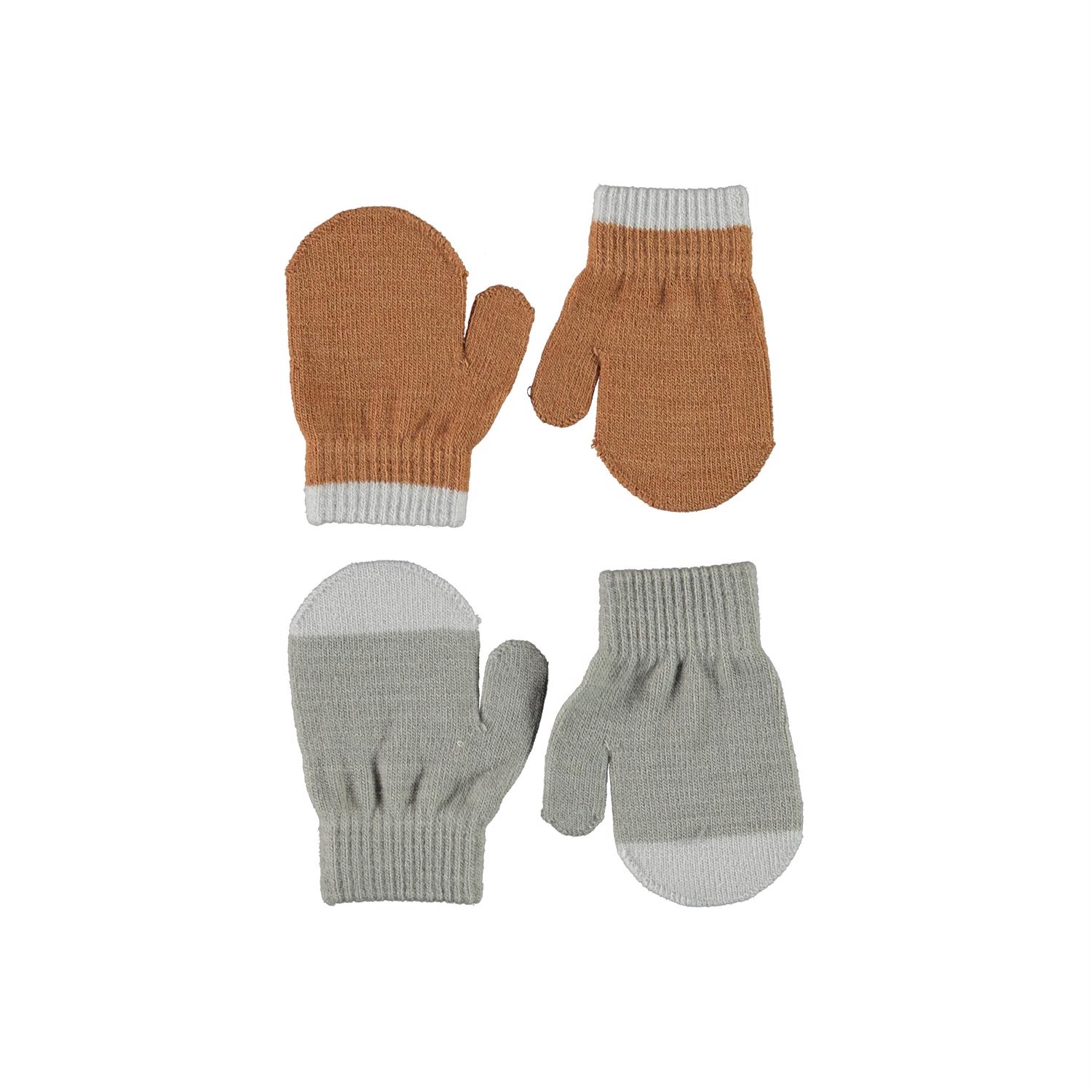 2 par baby luffer i brun og grå. Begge par har lysegrå detaljer.