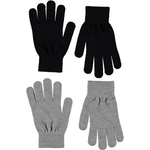 To par strik handsker. Det ene par er grå, mens det andet er sorte.