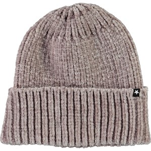 Grå vamset og blød hue i flot chenille strik med stort ombuk.