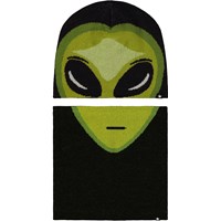 Grå hue og halsrør i uldblanding med løvemotiv, som er fordelt på både huen og halsrøret.
