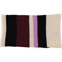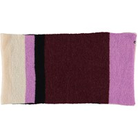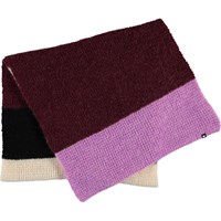 Strik halstørklæde med brede striber i lilla, bordeaux, hvid og sort. Kombiner halstørklædet med matchende hue.