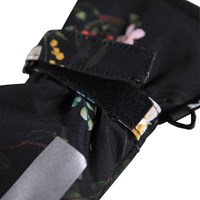 Sorte, vandtætte og åndbare luffer med blomsterprint, fleecefoer og 3M™ Thinsulate™ isolering. Lufferne har en refleks på forsiden, samt elastik og justerbar velcro ved håndleddet.