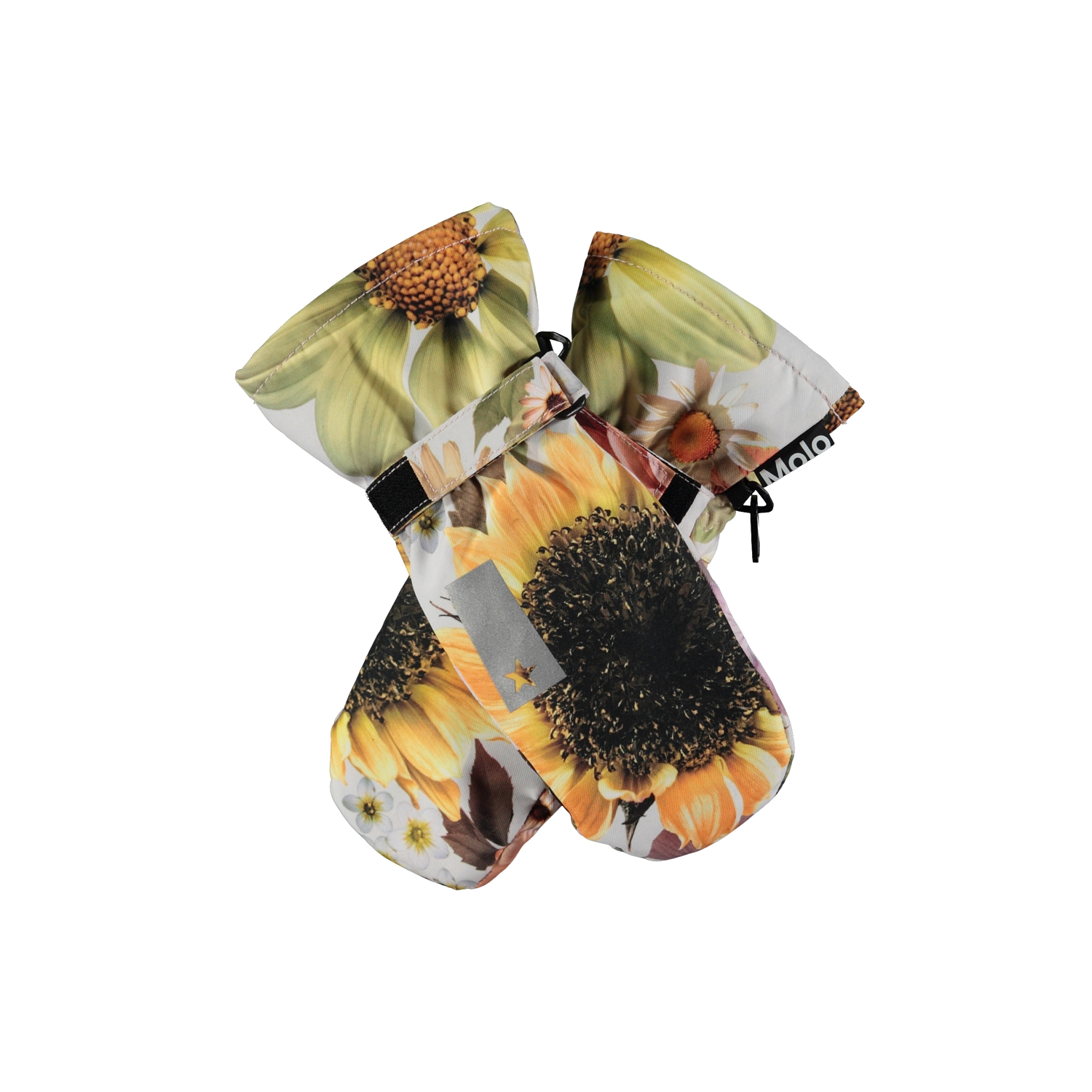 Blomstrede vinterhandsker til de kolde dage. På indersiden af handsken og ved tommelfingeren er der sorte gummibelægninger, der giver en god gribehåndflade. Handskerne egner sig godt til alt slags vejr og er perfekte både til hverdagen eller skiferien. Derudover matcher handskerne med Molo’s overtøj i farver og print.