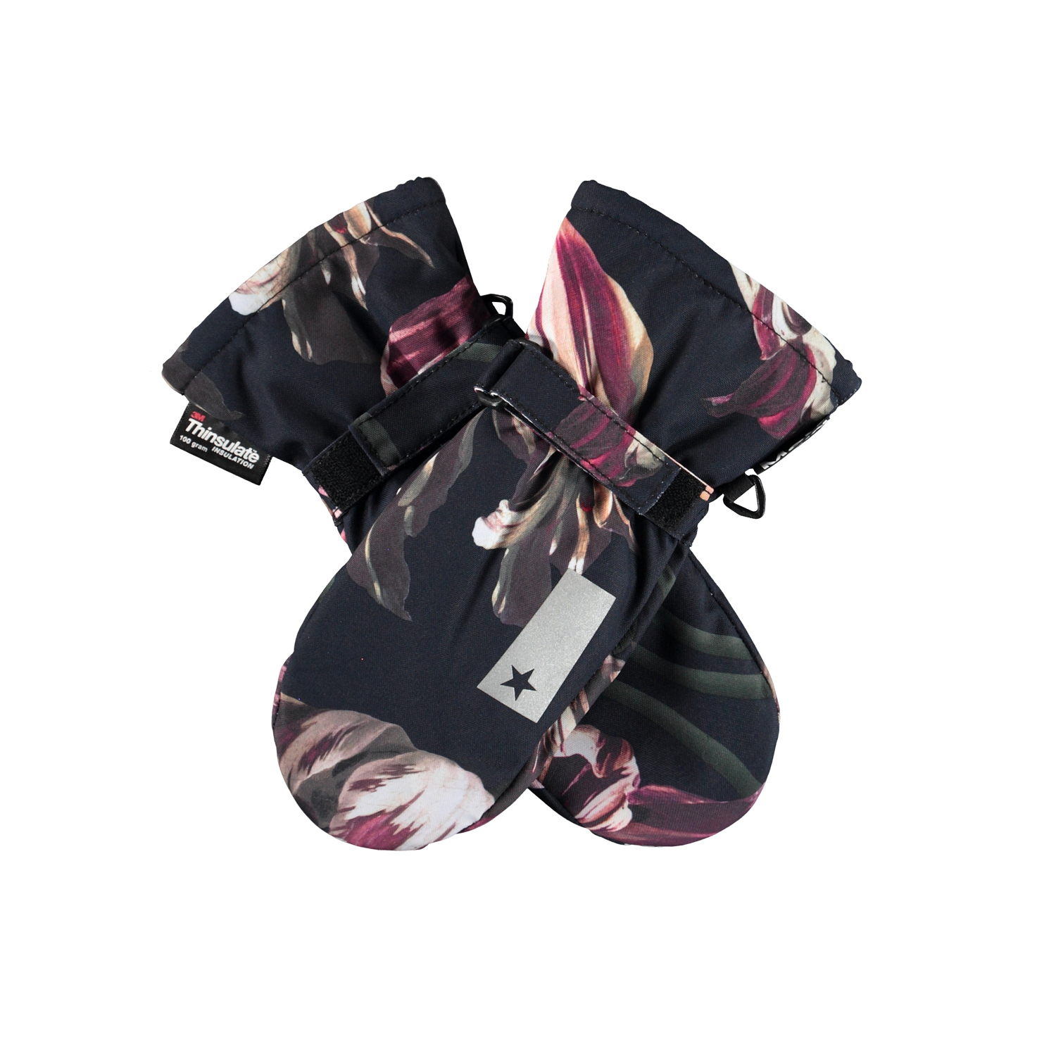 Vandtætte og åndbare luffer med 3M™ Thinsulate™ isolering. Lufferne er i sort med tulipan print og har en Molo refleks på forsiden, samt elastik og justerbar velcro ved håndleddet. Ydermaterialet er fremstillet af 45% recycled polyester, 3M™ Thinsulate™ foret er fremstillet af 78% recycled polyester og inderstoffet af 100% recycled polyester. Handskerne har en vandafvisende PFC-fri imprægnering (indeholder f.eks. ikke PFOS, PFOA og lignende). Vandsøjletryk: 10.000 mm. Åndbarhed: 8.000 g/m2/24t.