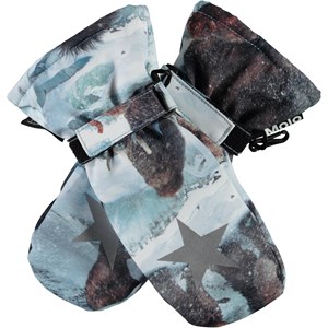 Vandtætte og åndbare luffer med 3M™ Thinsulate™ isolering. Lufferne er i lyseblå med print af mammutter og med en stjernerefleks på forsiden, samt elastik og justerbar velcro ved håndleddet. Handskerne har en vandafvisende PFC-fri imprægnering (indeholder f.eks. ikke PFOS, PFOA og lignende). Vandsøjletryk: 10.000 mm. Åndbarhed: 8.000 g/m2/24t.