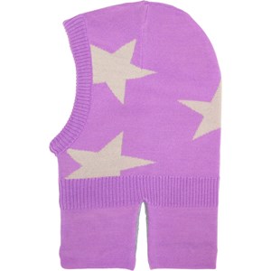 Lilla elefanthue med et beige stjernemønster. Huen har indsnit ved halsen, der sikrer, at den sidder til over bryst og skuldre. Fremstillet i en blød uldblanding og foret med fleecefor.