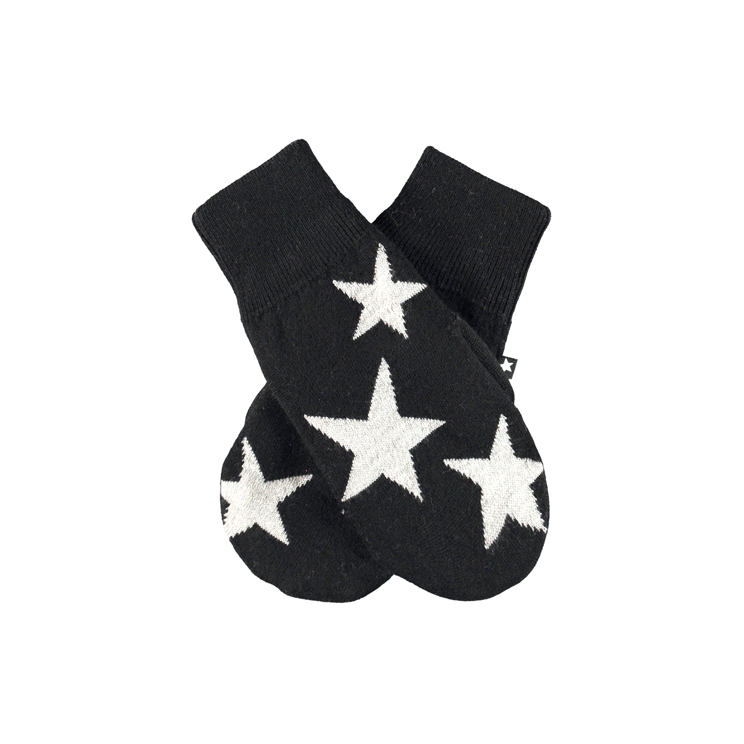 Strik vanter i sort med hvide stjerner.
