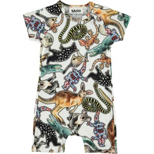 Felton er en baby body med all-over print af Australiens vilde dyr. Bodyen har korte ærmer og ben. Trykknapper ved hals og mellem ben gør det let, at få bodyen af og på.