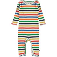 Fenez er en stribet multifarvet baby body med lange ærmer og ben. Trykknapper ved hals og ben gør det let at få bodyen af og på.