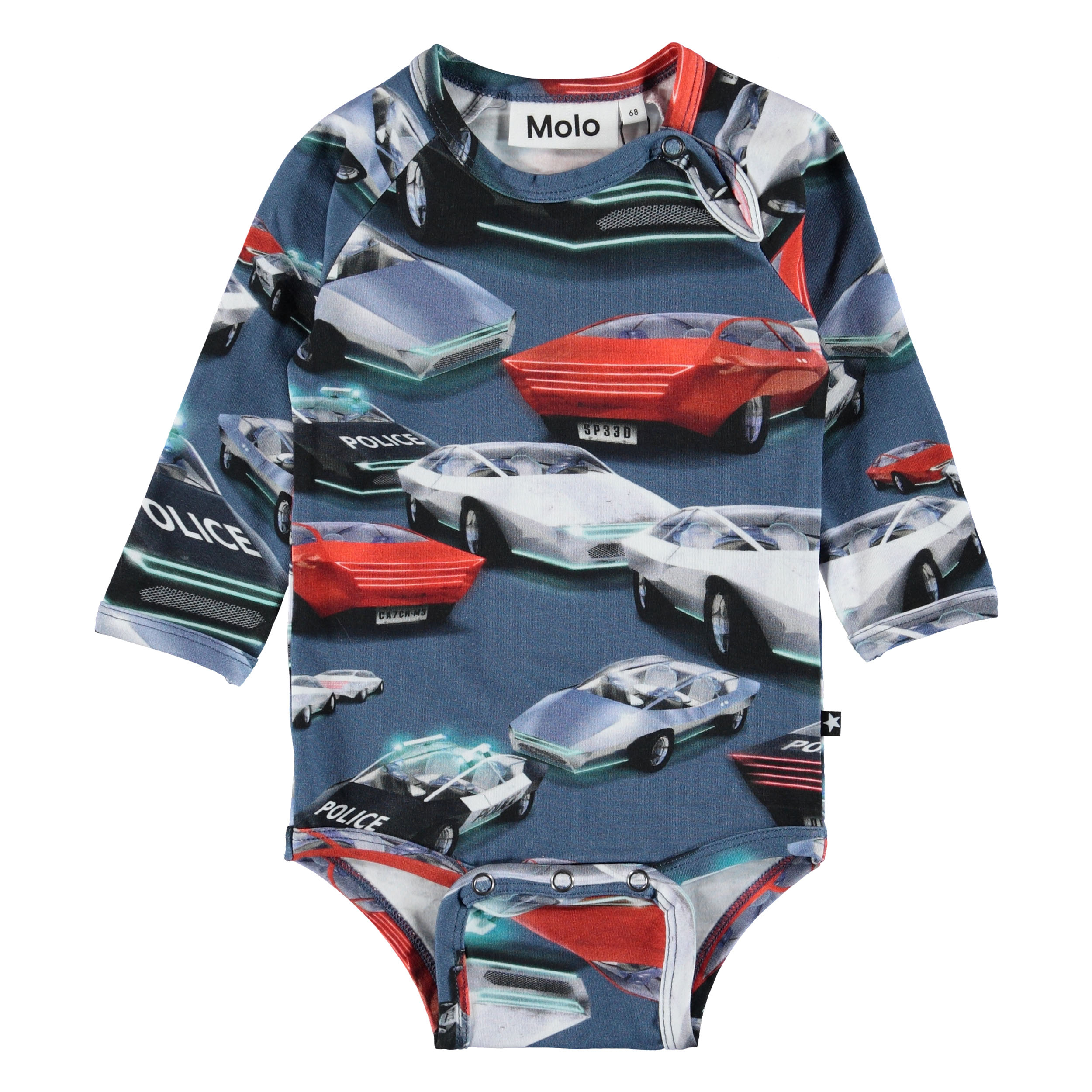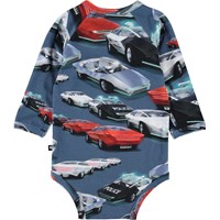 Selvkørende biler er fremtiden og printet på Field, som er en baby body med lange ærmer. Trykknapper ved hals og mellem ben gør det let, at få bodyen af og på.