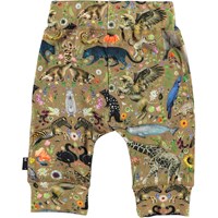 Sammy er et lysebrune babybukser med et fantastisk og detaljerigt print af surrealistiske dyr og planter. Kombiner med matchende top. Bukserne har en bred elastisk rib ved talje og benafslutning, samt synlige stikninger foran, som giver bukserne et sweatpants look.