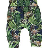 Sammy er et par babybukser med printet 'Fern Friends'. Bukserne har en bred elastisk rib ved talje og benafslutning, samt synlige stikninger foran, som giver bukserne et sweatpants look.