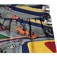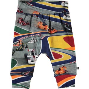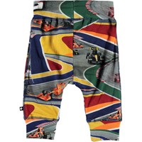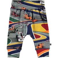 Sammy er et par baby bukser med print af farverige racerbiler. Bukserne har en bred elastisk rib ved talje og benafslutning, samt synlige stikninger foran, som giver bukserne et sweatpants look.