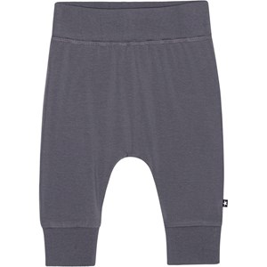 Grå baby bukser til de mindste i økologisk bomuldsjersey. Bukserne har en bred elastisk rib ved talje og benafslutning, samt synlige stikninger foran, som giver bukserne et sweatpants look. Bukserne er bløde at have på med masser af plads til bevægelse.