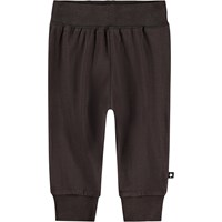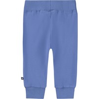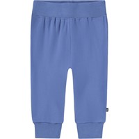 Blå bukser i økologisk bomuldsjersey til de mindste. Bukserne har en bred elastisk ribkant ved talje og ben afslutning samt synlige stikninger foran.De er bløde at have på og giver masser af plads til bevægelse.