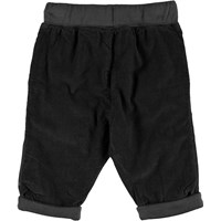 Severu er et par fløjls baby bukser i grå. Bukserne har elastisk talje med bindebånd, lommer og opsmøg i benene.