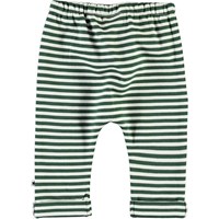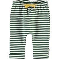 Sigurd er et par grøn og hvid stribede babybukser. Bukserne har gult bindebånd i livet og opsmøg i benene. Certificeret af Ecocert Greenlife, certifikationsnr. 197496.