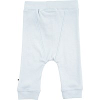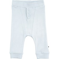 Bløde, lyseblå baby bukser i rib med pynteknapper på fronten samt mellembred kant i talje og ved benslut.