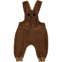 Snurre er et par baby smækbukser i brun velour med påsyet ansigt på fronten, som får bukserne til at ligne en kanin.