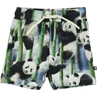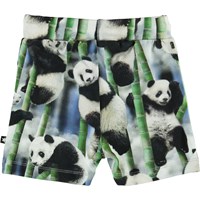 Simroy er et par baby shorts med bindebånd i all-over print med pandabjørne og deres livret bambussen. Det bløde materiale og den elastiske talje sikrer komfort og en god pasform.