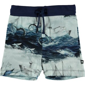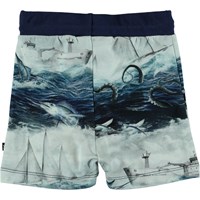 Simroy er et par baby shorts med printet "Sailor Stripe", hvor det vilde hav udgør det stribede print. Det bløde materiale og den elastiske talje med bindebånd, sikrer komfort og en god pasform.