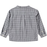 Ternet skjorte til de mindste lavet af blødt økologisk bomuld. Skjorten har en kinakrave og en stolpelukning med tre knapper. Den har en løs pasform, der gør den behagelig at have på og nem at komme i. Kombiner skjorten med matchende bukser for at få et fuldendt og behageligt sæt.