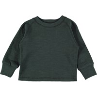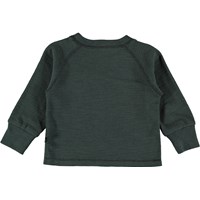 Grøn baby bluse i blød bomuld med synlige stikninger og brede, elastiske kanter ved ærmeafslutning.