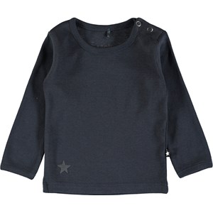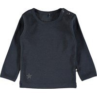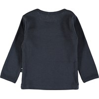 Langærmet, mørkeblå basis bluse i bomuld til baby. Trykknapper ved halsåbning gør det let at få blusen af og på.