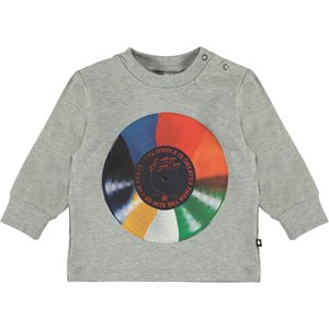 Eloy er en grå baby sweatshirt med print af farverig plade på fronten. Sweatshirten har knappelukning på den ene skulder.