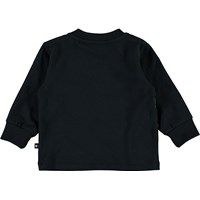 Eloy er en baby bluse med print af junglens dyr i mørket. Eloy har knappelukning på den ene skulder og blå ærmer og bagside.