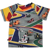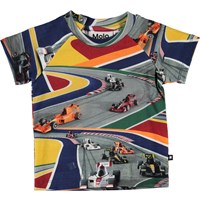 Emmett er en baby bomulds t-shirt med printet 'Full Speed', som er hurtige racerbiler i flotte farver. Emmett har en enkelt knap i nakken, som gør det nemt at få blusen af og på.
