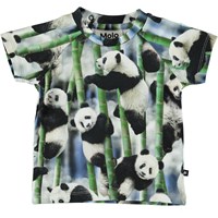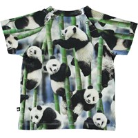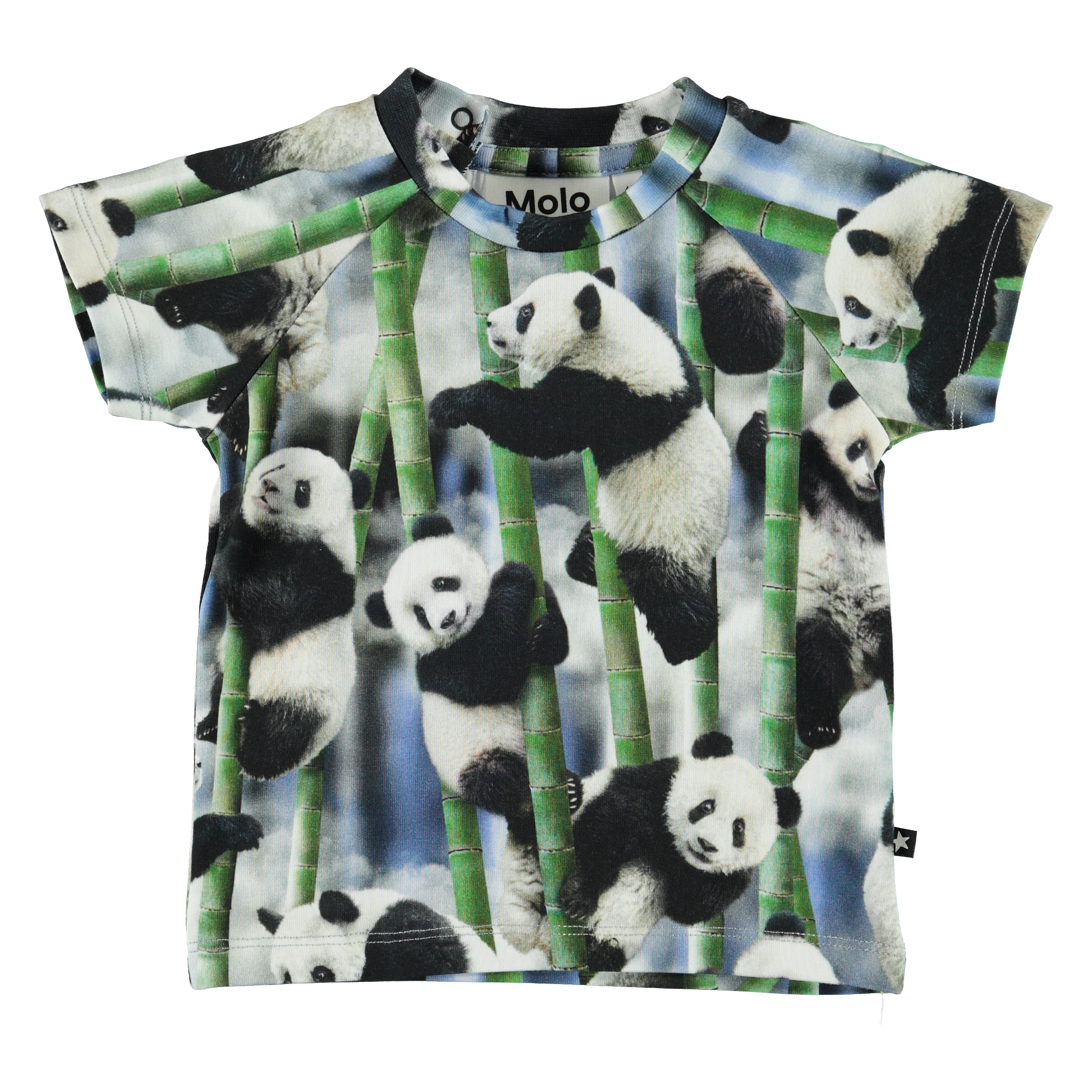 Emmett er en baby bomulds t-shirt med all-over print af pandabjørne og deres livret bambussen. Emmett har en enkelt knap i nakken, som gør det nemt at få blusen af og på.