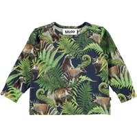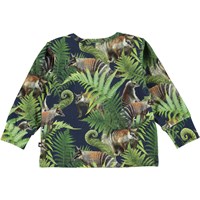 Enez er en blå babybluse med print af små dyr og planter. Eloy har knappelukning på den hver skulder, som gør den nem at få af og på.