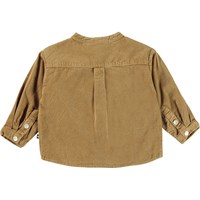 Enoz er en brun fløjls babyskjorte. Skjorten har knapper i kraven. Der findes babybukser, som passer perfekt til skjorten.