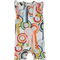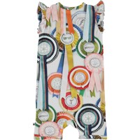 Samler du også på rosetter, så er Faris fyldt med flotte, farverige rosetter. Faris er en baby dragt uden ærmer og med korte ben, samt flæsedetaljer omkring skuldrene. Trykknapper ved hals og mellem ben, gør det let at få dragten af og på.