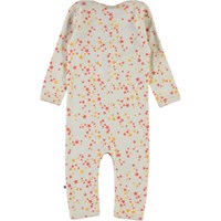 Fenez er baby body med lange ærmer og ben. Dragten har print af mini stjerner i orange og gul. Trykknapper ved hals og ben gør det let at få den af og på. Certificeret af Ecocert Greenlife, certifikationsnr. 197496.