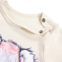 Råhvid langærmet body i økologisk bomuld til de mindste med print af en sød bjørn og teksten 'Sleepy Bear'. Bodyen har kantbånd samt knaplukning på skuldrene og mellem benene for nem af- og påklædning.