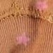San er et par brune baby bukser med stjerne print. Bukserne har en bred elastisk talje og benafslutning, hvor begge dele er ombukket.