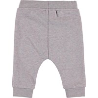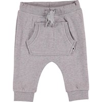 Sandie er et par bløde baby bukser i grå med lilla skær og kænguru lomme på fronten. Sandie har bindebånd i taljen og en behagelig løs pasform.