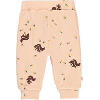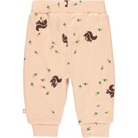 Shona er et par rosa baby sweatpants med print af små egern og nødder. Bukserne har en elastisk talje og benafslutning.