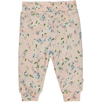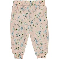 Shona er et par lange, lyserøde babybukser med blomsterprint, fremstillet i 100% økologisk bomuld. Bukserne har elastisk ribkant i både talje og bed ankel, for en optimal pasform.
