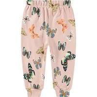 Lyserøde sweatpants i økologisk bomuld til de mindste. Bukserne har elastik og bindebånd i taljen samt ribkanter ved benene. De er nemme at få af og på og giver masser af bevægelsesfrihed. Bukserne har et alloverprint af smukke og farverige sommerfugle.